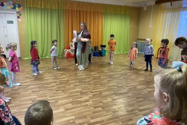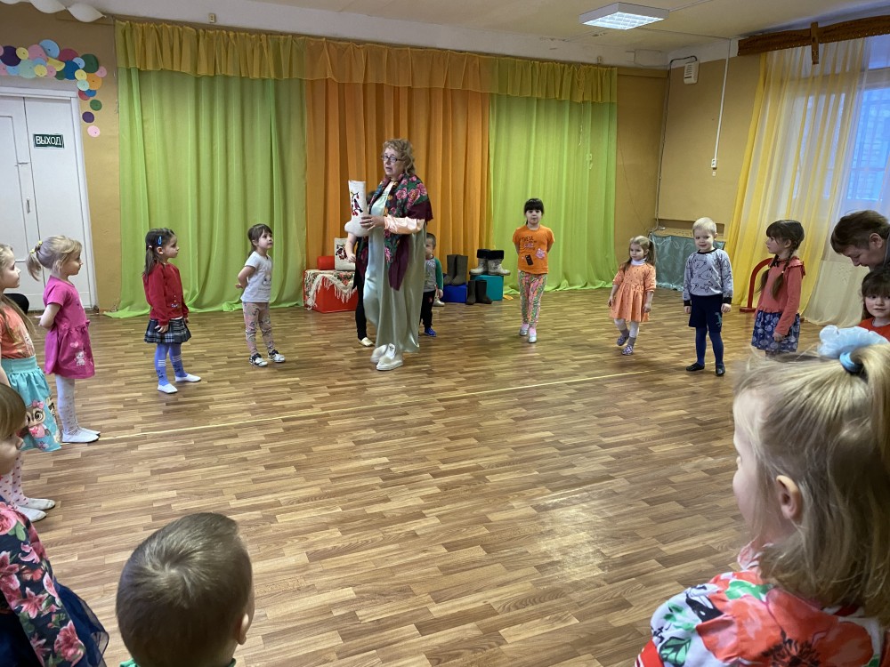 В гости к нам приходила Марья Искусница, она рассказала историю валенок на Руси, а потом играла с ребятами в веселые игры.